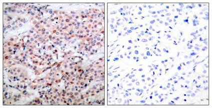 純化方式:Antibodies were produced by immunizing rabbits with synthetic phosphopeptide and KLH conjugates. Antibodies were purified by affinity-chromatography using epitope-specific phosphopeptide. Non-phospho specific antibodies were removed by chromatogramphy usi