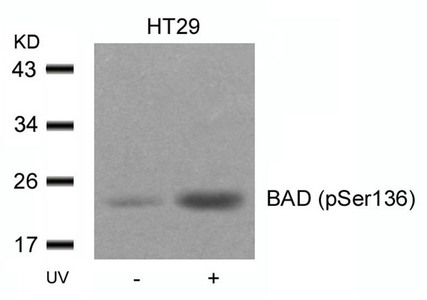 免疫原:Peptide sequence around phosphorylation site of serine136 (S-R-S(p)-A-P) derived from Mouse BAD.
