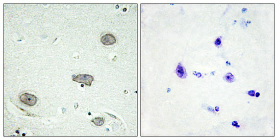 純化方式:Antibodies were produced by immunizing rabbits with synthetic phosphopeptide and KLH conjugates. Antibodies were purified by affinity-chromatography using epitope-specific phosphopeptide. Non-phospho specific antibodies were removed by chromatogramphy usi
