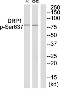 免疫原:Peptide sequence around phosphorylation site of Serine637(K-L-S(p)-A-R) derived from Human DRP1.
