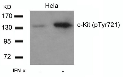 免疫原:Peptide sequence around phosphorylation site of tyrosine 721 (N-E-Y(p)-M-D) derived from Human c-Kit.