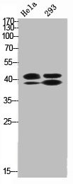 免疫原:Synthesized peptide derived from Human ERK 1/2 around the phosphorylation site of T202 and Y204.