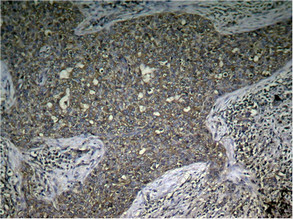 Immunohistochemical analysis ofparaffin-embedded human breast carcinomatissue using mTOR (Phospho-Ser2448) Antibody