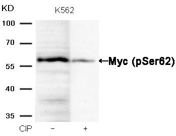 免疫原:Peptide sequence around phosphorylation site of serine 62 (P-L-S(p)-P-S) derived from Human Myc.