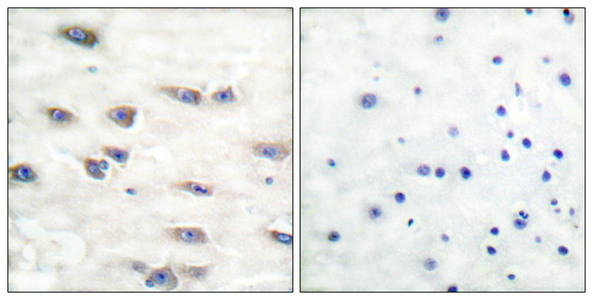 純化方式:Antibodies were produced by immunizing rabbits with synthetic phosphopeptide and KLH conjugates. Antibodies were purified by affinity-chromatography using epitope-specific phosphopeptide. Non-phospho specific antibodies were removed by chromatogramphy usi