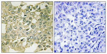 純化方式:Antibodies were produced by immunizing rabbits with synthetic phosphopeptide and KLH conjugates. Antibodies were purified by affinity-chromatography using epitope-specific phosphopeptide. Non-phospho specific antibodies were removed by chromatogramphy usi