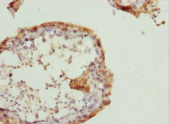 Immunohistochemistry of paraffin-embedded human testis tissue using CSB-PA019214ESR1HU at dilution of 1:100