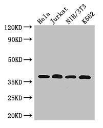 Positive WB detected in: Hela whole cell lysate, Jurkat whole cell lysate, NIH/3T3 whole cell lysate, K562 whole cell lysate