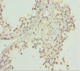 Immunohistochemistry of paraffin-embedded human?testis tissue using CSB-PA862045DSR2HU at dilution of 1:100
