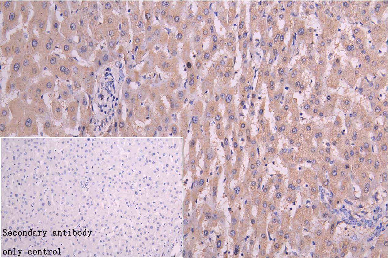 IHC image of CSB-PA019828LA01HU diluted at 1:300 and staining in paraffin-embedded human liver cancer performed on a Leica BondTM system. After dewaxing and hydration, antigen retrieval was mediated by high pressure in a citrate buffer (pH 6.0). Section was blocked with 10% normal goat serum 30min at RT. Then primary antibody (1% BSA) was incubated at 4°C overnight. The primary is detected by a Goat anti-rabbit polymer IgG labeled by HRP and visualized using 0.05% DAB.