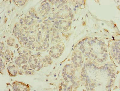 Immunohistochemistry of paraffin-embedded human breast cancer using CSB-PA019883LA01HU at dilution of 1:100