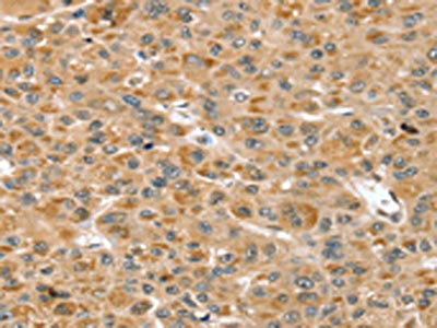 The image on the left is immunohistochemistry of paraffin-embedded Human liver cancer tissue using CSB-PA534045(RNH1 Antibody) at dilution 1/30, on the right is treated with fusion protein. (Original magnification: ×200)