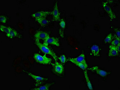 Immunofluorescent analysis of Hela cells using CSB-PA896760LA01HU at dilution of 1:100 and Alexa Fluor 488-congugated AffiniPure Goat Anti-Rabbit IgG(H+L)