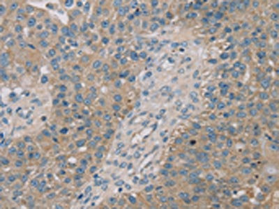 The image on the left is immunohistochemistry of paraffin-embedded Human breast cancer tissue using CSB-PA796713(ROBO2 Antibody) at dilution 1/35, on the right is treated with synthetic peptide. (Original magnification: ×200)