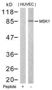 免疫原:Peptide sequence around aa.374~378 (G-Y-S-F-V) derived from Human MSK1.