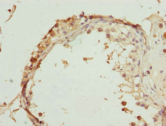Immunohistochemistry of paraffin-embedded human testis tissue using CSB-PA848835ESR1HU at dilution of 1:100