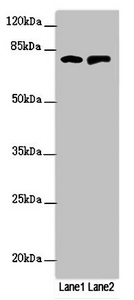 Observed band size: 76 kDa -