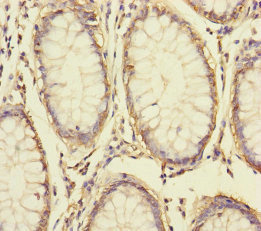 組織特異性:Expressed at highest levels in colon and at moderate levels in thymus, kidney, liver, small intestine, and lung. Low expression in heart and no expression is seen in brain, skeletal muscle, spleen, placenta and peripheral blood leukocytes.