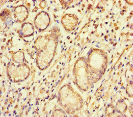 Immunohistochemistry of paraffin-embedded human gastric cancer using CSB-PA020644LA01HU at dilution of 1:100