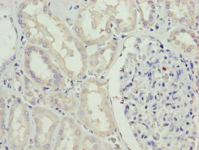 Immunohistochemistry of paraffin-embedded human kidney tissue using CSB-PA020927LA01HU at dilution of 1:100