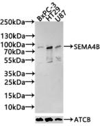 All lanes: SEMA4B antibody at 1:1000