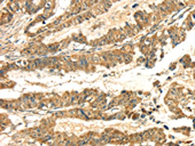 The image on the left is immunohistochemistry of paraffin-embedded Human esophagus cancer tissue using CSB-PA787154(SEMA4C Antibody) at dilution 1/30, on the right is treated with fusion protein. (Original magnification: ×200)