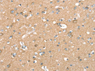 The image on the left is immunohistochemistry of paraffin-embedded Human brain tissue using CSB-PA183005(SEPN1 Antibody) at dilution 1/20, on the right is treated with synthetic peptide. (Original magnification: ×200)