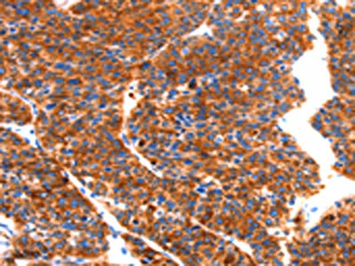 The image on the left is immunohistochemistry of paraffin-embedded Human liver cancer tissue using CSB-PA113302(SEPT4 Antibody) at dilution 1/50, on the right is treated with synthetic peptide. (Original magnification: ×200)
