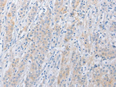 The image on the left is immunohistochemistry of paraffin-embedded Human gastric cancer tissue using CSB-PA084633(SERPINE2 Antibody) at dilution 1/20, on the right is treated with fusion protein. (Original magnification: ×200)