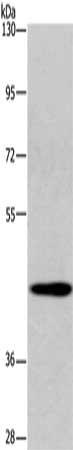 Gel: 6%SDS-PAGE, Lysate: 40 μg, Lane: Mouse liver tissue, Primary antibody: CSB-PA915546(SGK2 Antibody) at dilution 1/200, Secondary antibody: Goat anti rabbit IgG at 1/8000 dilution, Exposure time: 20 seconds