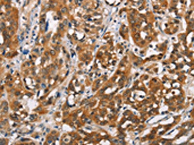 The image on the left is immunohistochemistry of paraffin-embedded Human breast cancer tissue using CSB-PA203041(SH2B2 Antibody) at dilution 1/30, on the right is treated with synthetic peptide. (Original magnification: ×200)