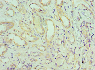 Immunohistochemistry of paraffin-embedded human kidney tissue using CSB-PA878084ESR1HU at dilution of 1:100