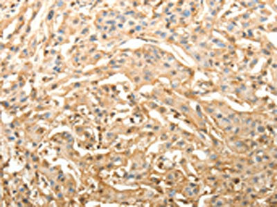 The image on the left is immunohistochemistry of paraffin-embedded Human lung cancer tissue using CSB-PA943707(SLC25A11 Antibody) at dilution 1/40, on the right is treated with fusion protein. (Original magnification: ×200)