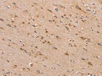 The image on the left is immunohistochemistry of paraffin-embedded Human brain tissue using CSB-PA251777(SLC25A20 Antibody) at dilution 1/30, on the right is treated with synthetic peptide. (Original magnification: ×200)
