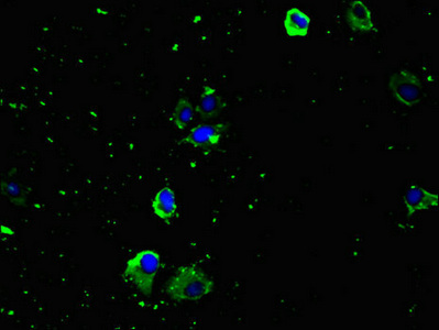 Immunofluorescent analysis of U251 cells using CSB-PA857875LA01HU at dilution of 1:100 and Alexa Fluor 488-congugated AffiniPure Goat Anti-Rabbit IgG(H+L)