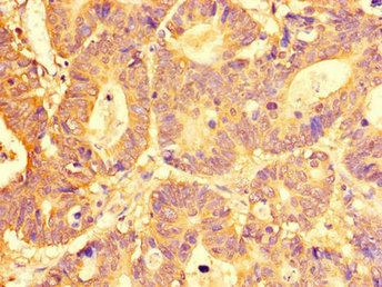 Immunohistochemistry of paraffin-embedded human colon cancer using CSB-PA857875LA01HU at dilution of 1:100