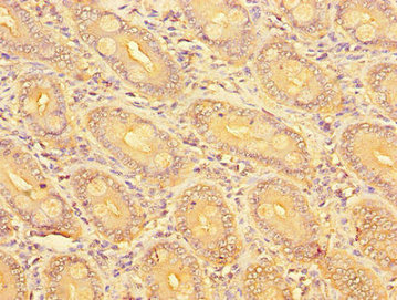 組織特異性:Widely expressed with a high expression in ileum. Expressed in testis, colon, liver, small intestine, kidney, ovary and adrenal gland; and at low levels in heart, lung, brain, pituitary, thyroid gland, uterus, prostate, mammary gland and fat.