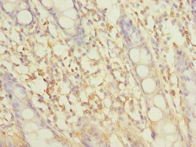Immunohistochemistry of paraffin-embedded human colon tissue using CSB-PA863929LA01HU at dilution of 1:100
