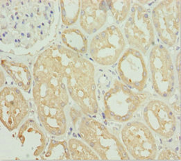 Immunohistochemistry of paraffin-embedded human kidney tissue using CSB-PA021874ESR2HU at dilution of 1:100