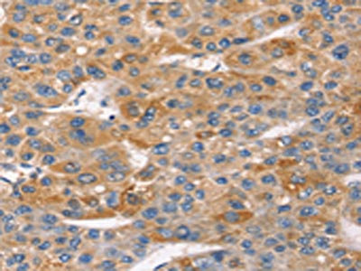 The image on the left is immunohistochemistry of paraffin-embedded Human liver cancer tissue using CSB-PA289378(SNTA1 Antibody) at dilution 1/20, on the right is treated with synthetic peptide. (Original magnification: ×200)