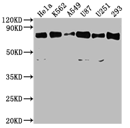 Positive WB detected in: Hela whole cell lysate, K562 whole cell lysate, A549 whole cell lysate, U87 whole cell lysate, U251 whole cell lysate, 293 whole cell lysate