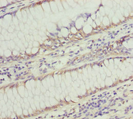 Immunohistochemistry of paraffin-embedded human colon cancer using CSB-PA022393ESR1HU at dilution of 1:100