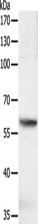 Gel: 10%SDS-PAGE, Lysate: 40 μg, Lane: jurkat cells, Primary antibody: CSB-PA795855(SOCS6 Antibody) at dilution 1/600, Secondary antibody: Goat anti rabbit IgG at 1/8000 dilution, Exposure time: 1 second