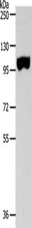 Gel: 8%SDS-PAGE, Lysate: 40 μg, Lane: Human colon tissue, Primary antibody: CSB-PA090256(SPAG1 Antibody) at dilution 1/600, Secondary antibody: Goat anti rabbit IgG at 1/8000 dilution, Exposure time: 2 minutes