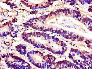 Immunohistochemistry of paraffin-embedded human colon cancer using CSB-PA022518LA01HU at dilution of 1:100