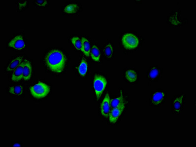 Immunofluorescent analysis of A549 cells using CSB-PA022585LA01HU at dilution of 1:100 and Alexa Fluor 488-congugated AffiniPure Goat Anti-Rabbit IgG(H+L)