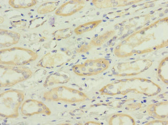 Immunohistochemistry of paraffin-embedded human kidney tissue using CSB-PA022646ESR2HU at dilution of 1:100