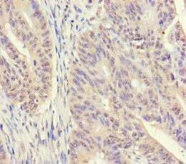 Immunohistochemistry of paraffin-embedded human colon cancer using CSB-PA01115A0Rb at dilution of 1:100