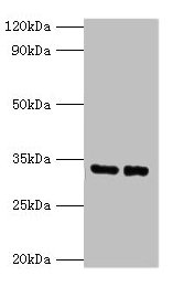 Predicted band size: 34 kDa