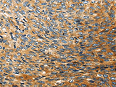The image on the left is immunohistochemistry of paraffin-embedded Human esophagus cancer tissue using CSB-PA212583(STC2 Antibody) at dilution 1/25, on the right is treated with fusion protein. (Original magnification: ×200)